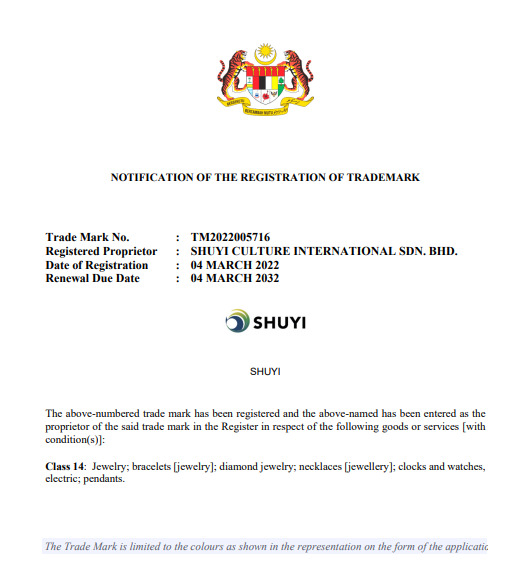 数易商标完成在马来西亚的注册认证